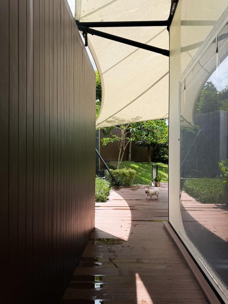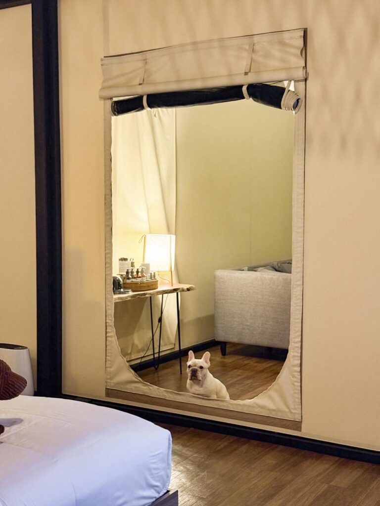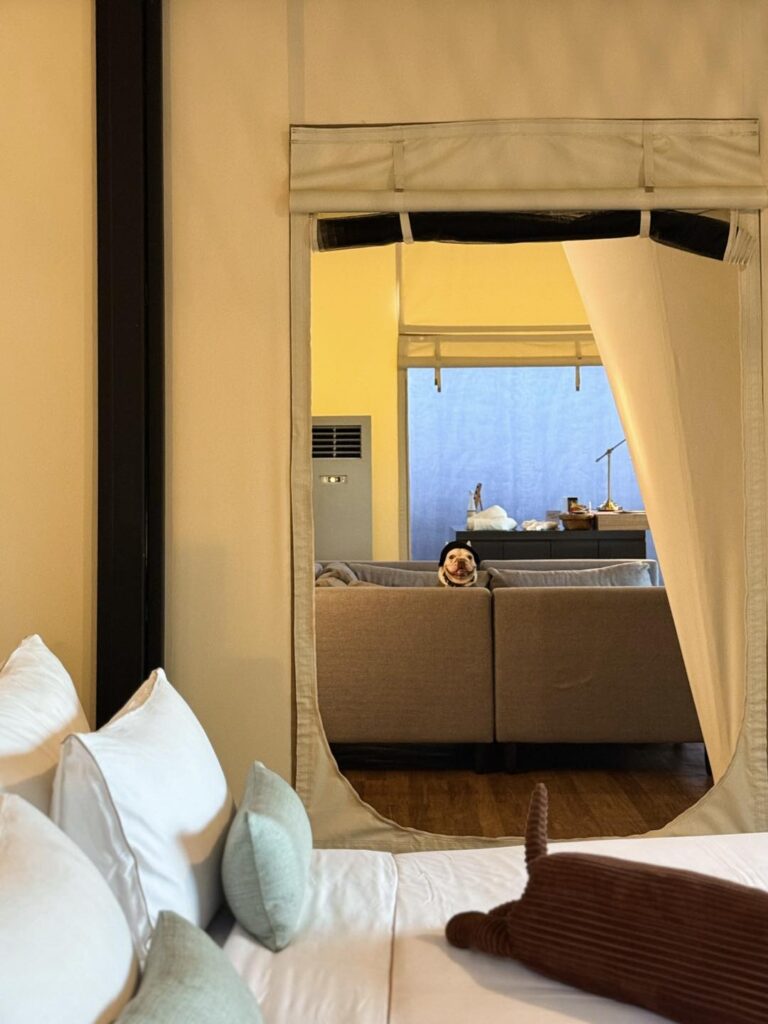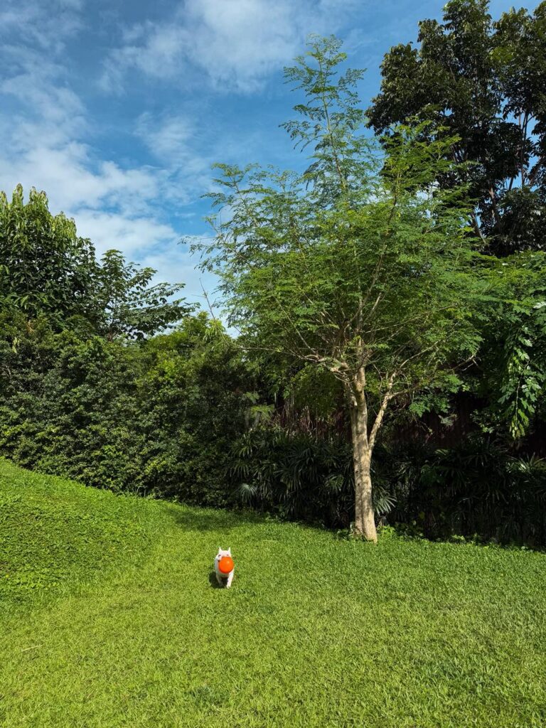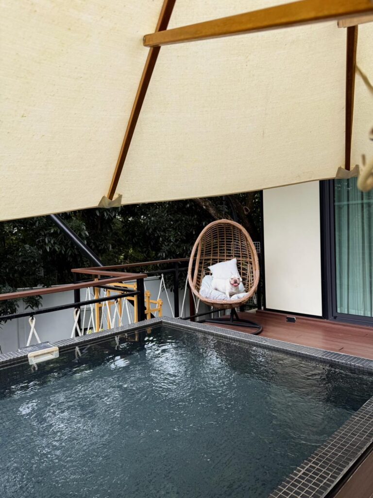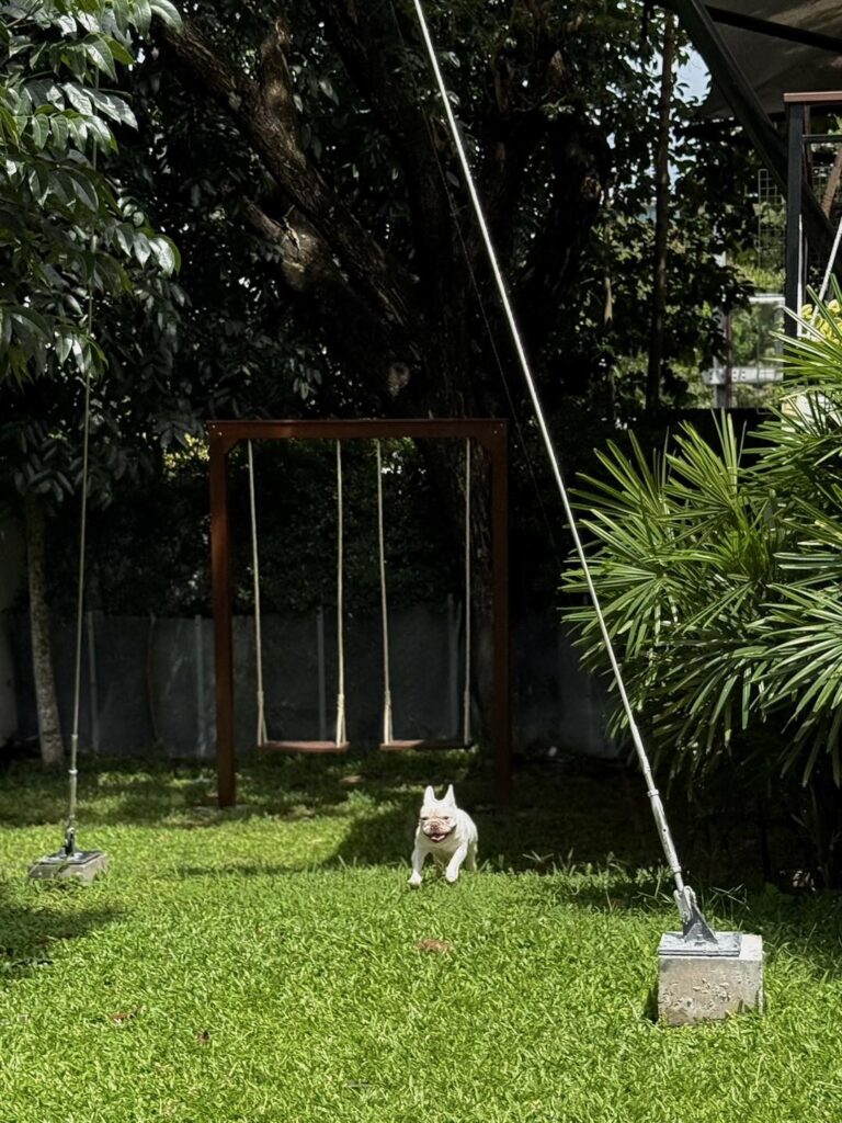 วิลล่าหลังนี้รายล้อมไปด้วยต้นไม้ใหญ่ พื้นที่สีเขียวโอบล้อม รอบนี้เราเน้นสวน ไม่เน้นสระ เน้นให้ลูกหมาได้มาวิ่งเล่นสนามหญ้าปล่อยพลังแทน ซึ่งสนามก็กว้างมากจริงๆ ลูกพี่คือเบิกบานสุดๆไปเลยและแม่หมาอย่างเราก็อดเอาใจไอยูกหมาไม่ได้ ยังจะแอบสั่ง pet pool party (pet service ของทางรร.) เป็นบ่อบอลบึ้มๆมาให้เล่นอีกกก กี๊ดแตกกกกสิครับ