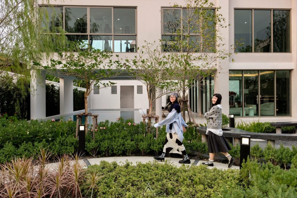 เข้ามาในโครงการก็จะเจอกับ Clubhouse และสวนสีเขียวรอต้อนรับลูกบ้านทุกคนก่อนเลย