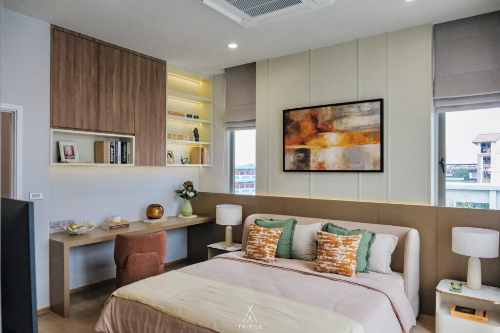 ห้องนอนที่ 3 และ 4 อยู่ข้าง ๆ กัน เหมาะสำหรับครอบครัวที่มีสมาชิกเยอะ หรือหากใครอยากรวมพื้นที่เป็นห้องเดียวกัน ก็สามารถปรับเปลี่ยนได้ตามความชอบเลยนะ