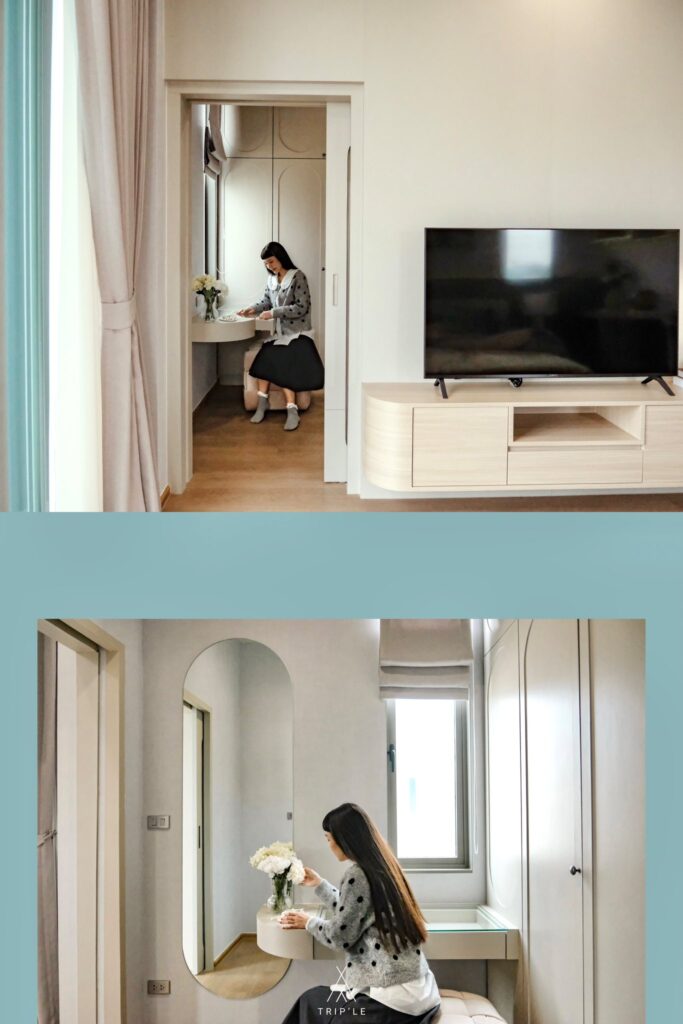 ห้องนี้ถูกใจสาวๆ แน่นอน เพราะเค้าแบ่งกั้นพื้นที่สำหรับห้องแต่งตัวพร้อม Walk-in Closet ให้เลย