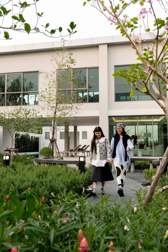 เข้ามาในโครงการก็จะเจอกับ Clubhouse และสวนสีเขียวรอต้อนรับลูกบ้านทุกคนก่อนเลย