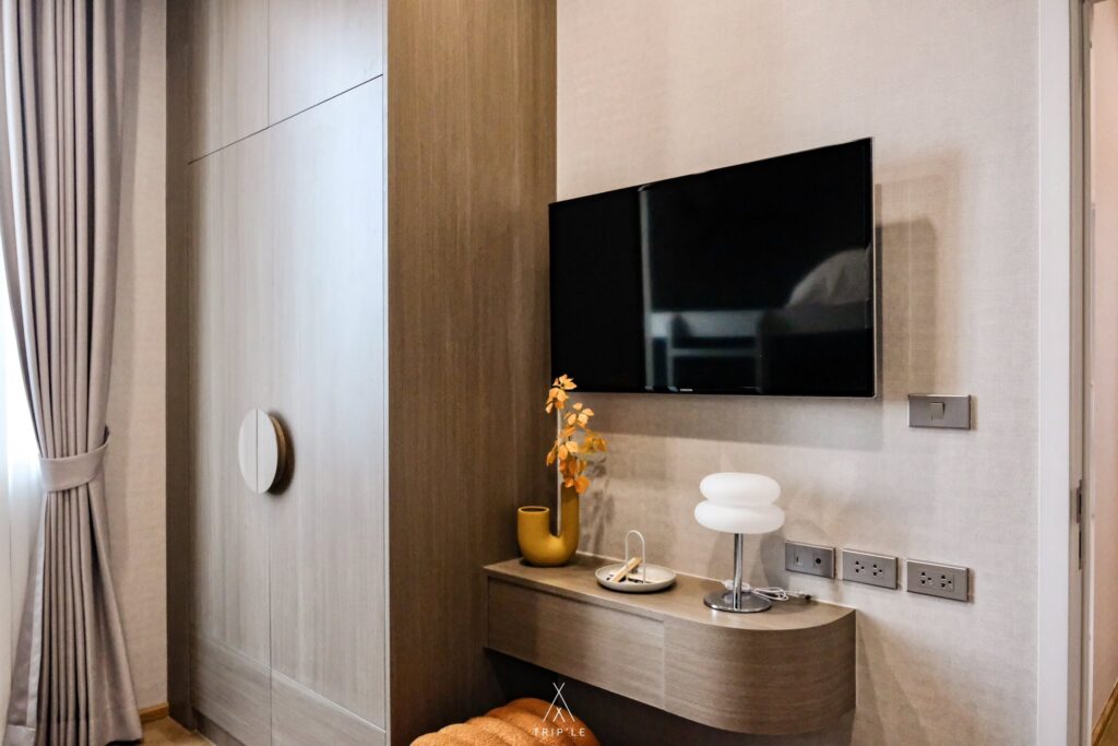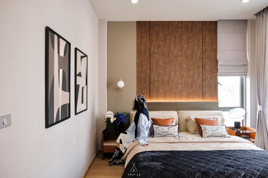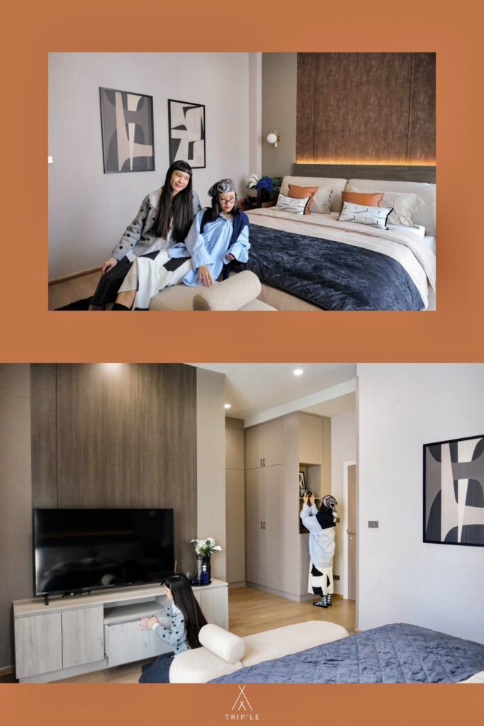 ห้องนี้ถูกใจสาวๆ แน่นอน เพราะเค้าแบ่งกั้นพื้นที่สำหรับห้องแต่งตัวพร้อม Walk-in Closet ให้เลย