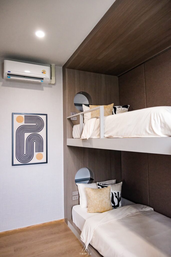 ห้องนอนที่ 3 และ 4 อยู่ข้าง ๆ กัน เหมาะสำหรับครอบครัวที่มีสมาชิกเยอะ หรือหากใครอยากรวมพื้นที่เป็นห้องเดียวกัน ก็สามารถปรับเปลี่ยนได้ตามความชอบเลยนะ
