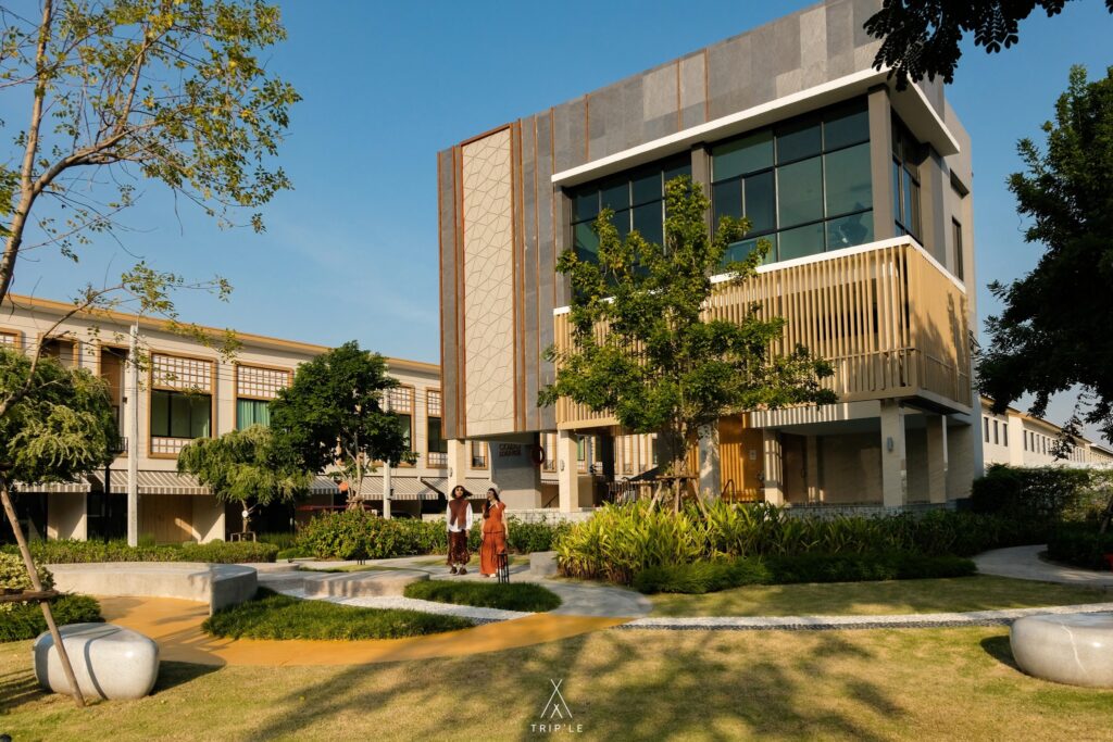 พอได้เข้ามาในโครงการก็เจอส่วนกลางเลย เป็นสวนพื้นที่สีเขียวรอต้อนรับอยู่ สัมผัสได้ถึงบรรยากาศที่ร่มรื่น มองแล้วสบายตาสุดๆ