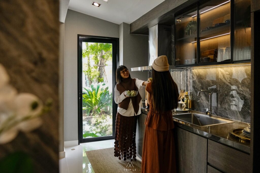 โซนห้องครัวสามารถทำเป็นแบบเปิด หรือจะกั้นเป็นห้องก็ได้เช่นกัน